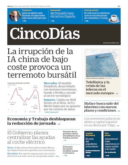 28-1-2025. La irrupción de los modelos de inteligencia artificial (IA) de la china DeepSeek, de bajo coste, provoca un terremoto bursátil con epicentro en Wall Street. El castigo se ceba con las grandes tecnológicas americanas que desarrollan la IA con gigantescas inversiones y descomunales revalorizaciones, cuyo recorrido es incierto.