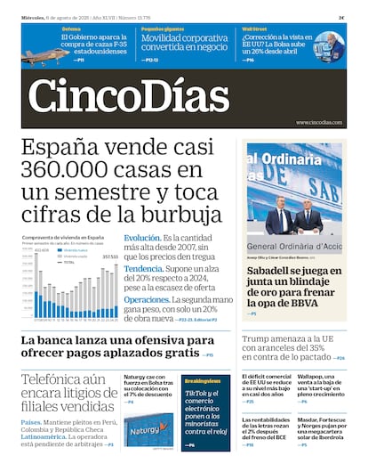 6-8-2025. En el primer semestre del año se venden 360.000 viviendas, una cifra un 20% superior a la de 2024 y desconocida desde 2007, que se acerca a los niveles de operaciones del periodo de la burbuja inmobiliaria de los primeros años del siglo. Los precios marcan máximos en un mercado con escasez de oferta.