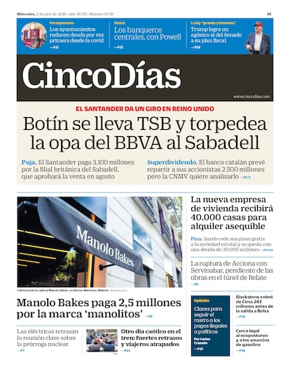2-7-2025. Santander paga 3.100 millones de euros por la filial británica de Sabadell TSB, que utilizará los recursos obtenidos en incrementar el dividendo a sus accionistas y en entorpecer la opa de BBVA, que finalmente fracasaría. Mientras Sabadell se deshace de uno de sus quebraderos de cabeza, Santander se refuerza en Reino Unido.