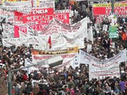 La policía griega calcula que la participación en las manifestaciones de Atenas es de en torno a unas 20.000 personas, cuando los sindicatos lo elevaban hasta al menos el doble.