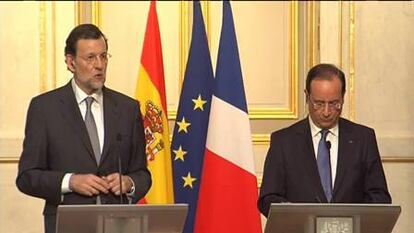 Tras su primer encuentro en París con el presidente de Francia, François Hollande, el presidente del Gobierno español ha pedido a la Unión Europea que garantice la liquidez del sistema financiero. Mariano Rajoy asegura que no se pueden mantener por mucho tiempo los actuales diferenciales de la deuda porque si no las políticas europeas de austeridad y crecimiento no producirán efecto