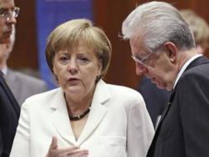Pocas veces desde que la caída de Grecia, hace ya dos años, marcara el inicio de la crisis soberana europea, una cumbre de líderes comunitarios convocada para resolverla se ha saldado con auténtica euforia. La del jueves y viernes fue una sonada excepción. Lejos de la decepción de citas anteriores, en las que las expectativas de actuaciones contundentes se vieron defraudadas por discursos continuistas y meras declaraciones de intenciones, los mercados celebraron por todo lo alto el viernes el giro de timón que se vislumbraba en Bruselas. Una apuesta por el intervencionismo y el crecimiento que contrasta -aunque no anula- con la férrea disciplina fiscal que Alemania venía imponiendo como único discurso. La necesidad de un rescate para la banca española y la nueva oleada de ataques a Italia han llevado a Madrid y Roma a plantar cara a Berlín, apoyados esta vez por un poderoso aliado, París, desde donde el nuevo presidente galo, François Hollande, ha supuesto un importante apoyo para los intereses de la Europa periférica. Los compromisos arrancados a la canciller alemana Angela Merkel la madrugada del jueves al viernes incluyen, entre otros puntos, permitir que los fondos de rescate compren bonos de los países más castigados o que recapitalicen directamente a los bancos con problemas. Una agenda de la que aún no se conoce la letra pequeña pero que bastó para calmar el incendio de los termómetros de riesgo -la prima española bajó de 542 a 474 puntos- y disparar al Ibex un 5,66%, hasta los 7.102,2 puntos. Es la mayor subida desde el 10 de mayo de 2010, cuando el macroplán de 750.000 millones de euros de la UE, entre avales y préstamos, desató un cierre masivo de cortos en todo el mundo y llevó al Ibex a su mayor avance de la historia (14,43%).