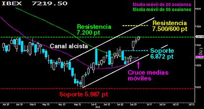 Continúa con fuerza la reacción alcista, el Ibex rompe resistencias y apunta a los 7.500 puntos