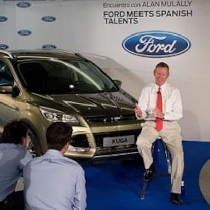 A Alan Mulally, máximo directivo de la multinacional automovilística, le gusta el contacto directo, conocer experiencias de primera mano. Por este motivo, no dudó en hacer un alto en sus vacaciones europeas (visita en España Valencia y Barcelona) para mantener una charla con 21 emprendedores españoles de diversos sectores.Mulally les impartió consejos, pero sobre todo explicó con anécdotas personales su particular modo de gestión. Habló mucho del sector del automóvil, pero también del aeronáutico, donde pasó más de 20 años en Boeing. "Participé en la fabricación de los modelos 727, 737, 747, 757 o 767", declaró el ingeniero aeronáutico, cuya pasión por los aviones queda patente una y otra vez.Sobre el futuro del automóvil, explicó el cambio que supone internet. "El cliente quiere una vida interconectada, también en el coche", aunque matizó, "de una forma segura, sin quitar la vista de la carretera y las manos del volante". Habló del futuro del vehículo eléctrico, pero consideró que existe mucho margen en la mejora de los motores de combustión. "No nos quedaremos sin combustibles fósiles; se necesitará tiempo y dinero, pero se encontrarán más bolsas"."Siempre pensando y pensando", les dijo. Y como ejemplo, explicó que todos los jueves se reúne con su equipo directivo parar "revisar sus planes y analizar lo que pasa en el mundo".Por eso, la innovación fue el motor de la charla con los emprendedores. "Pero para innovar hay que centrarse siempre en el consumidor, en lo que necesita", explicó. Respecto a la crisis, dijo no temerla: "No nos da miedo el futuro, hay que adaptarse, para lo cual hay que incorporar la innovación", les aconsejó. "Puede haber desarrollo económico en el mundo. No creo que haya nada que pare el crecimiento, está en el espíritu humano", sentenció en tono positivo.Recomendó transparencia en la transmisión de información a sus equipos, a los que exige estar asentados en la realidad, lo que implica saber reconocer en qué están fallando.¿Os está gustando la charla", preguntó.