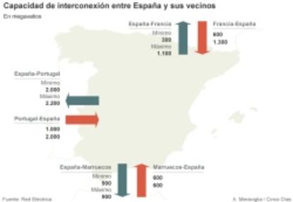 De momento, la balanza negativa solo se ha registrado con Portugal, pero no con Francia, ni en el conjunto de las interconexiones. Con el país galo las exportaciones alcanzaron los 759,9 GWh en los dos primeros meses del año y las exportaciones sumó 973,6 GWh.