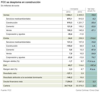 Los ajustes en su filial de Europa Central Alpine y en FCC Energía por los cambios en la regulación de las renovables en España han hecho mella en las cuentas de FCC: La compañía ha registrado en el primer trimestre un resultado neto atribuible negativo de 140 millones de euros, frente al beneficio de 16,6 millones de igual periodo del año pasado.