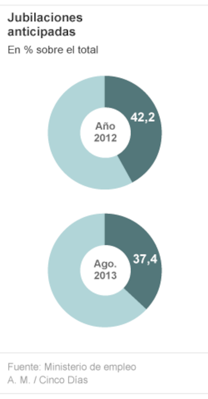 Además, en marzo también entró en vigor una nueva normativa más restrictiva del acceso a las jubilaciones anticipada y parcial. Esta última modalidad, que es la más costosa para la Seguridad Social, porque no tiene coeficientes penalizadores en el momento de cobrar la prestación a partir de los 65 años, ha perdido peso notablemente. Así, en 2012 estas jubilaciones eran el 9,69% del total y en la actualidad se han rebajado al 6%. Y, en general, la jubilación anticipada antes de los 65 años y un mes ha pasado de ser el 42,2% el pasado año al 37% en la actualidad. De esta forma, el peso de este tipo de retiro también baja del 40% por primera vez.