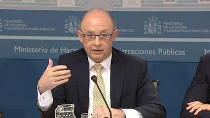 El ministro Cristóbal Montoro ha anunciado en rueda de prensa los datos desglosados de déficit de las autonomías de 2013, que en conjunto ya anunció el pasado viernes que tuvieron un déficit del 1,54 por ciento, por encima del objetivo del 1,3 por ciento fijado en el Consejo de Política Fiscal y Financiera (CPFF) del mes de julio.