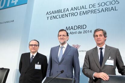 La puesta en escena del presidente del Gobierno, Mariano Rajoy, fue muy similar a la de los actos oficiales a los que ha acudido en las últimas semanas. La revisión de las previsiones de crecimiento de España, la tímida creación de empleo y el casi cumplimiento del objetivo de déficit en 2013 son los ejes sobre los que discurre el nuevo discurso del Ejecutivo, que da por cerrada la recesión y anuncia la incipiente recuperación. Ante los presidentes de las más de 100 grandes compañías que componen el Instituto de la Empresa Familiar (IEF), el presidente del Ejecutivo ofreció dos novedades: pidió al BCE más determinación para contener la apreciación del euro y evitar la deflación y señaló que cumplirá el déficit para este año sin subir impuestos y sin recortes adicionales.