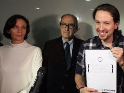 El programa económico de Podemos lleva la firma de los profesores Vicenç Navarro (Gironella, 1937) y Juan Torres (Granada, 1954). El primero, catalán de nacimiento, ha pasado buena parte de su vida en el extranjero, lo que le ha dejado un marcado acento al hablar difícil de ubicar. Si bien se licenció en Medicina en 1962, viró su carrera hacia las políticas sociales y se convirtió en un estudioso del Estado de bienestar. Hoy, es catedrático de Ciencias Políticas y Sociales en la Universidad Pompeu Fabra y profesor en la Johns Hopkins University.