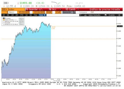 Junto a las cuentas del primer semestre, en España han tenido como protagonista a Iberdrola (la compañía ganó un 7,4% más en el primer semestre del año pese a la menor producción), la otra referencia del día volvió a pasar por Grecia. Al cierre de los mercados, el Parlamento griego todavía no había votado el segundo programa de reformas. De su aprobación depende que se inicien o no las negociaciones para el diseño que tercer rescate a Grecia se supondrá la entrega de hasta 86.000 millones de euros.