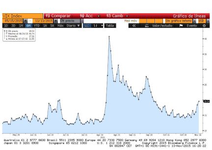 La volatilidad sube. Regresan los nervios al mercado. El índice Vix, que mide la volatililidad de la Bolsa estadounidense, pasa esta semana del 14,3% al 19,7%. Es su mayor incremento desde agosto, aunque está todavía muy lejos de los máximos alcanzados entonces.