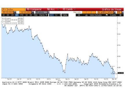 Y es que, como el resto de sus vecinos, el Ibex 35 parece haber dejado de mirar por unos instantes a los bancos centrales para prestar especial atención a mercados como el de materias primas. Las commodities ocupan las preocupaciones de los inversores. El barril de petróleoBrent está cerca de los mínimos de agosto.