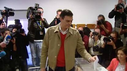 El líder del PSOE transmitióeste mensaje tras votar junto a su esposa, Begoña Gómez, en el centro cultural Volturno, del municipio madrileño de Pozuelo de Alarcón.
