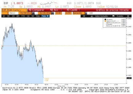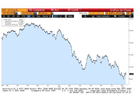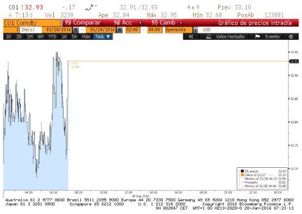 2 Petróleo. Dos horas antes del cierre de las Bolsa europeas, Bloomberg recogía las declaraciones del ministro de Energía ruso que señalaba la posibilidad de una reunión extraordinaria de la OPEP en febrero para abordar el tema del recorte de la producción en un 5% por parte de todos los estados miembros. Estas declaraciones se produjeron en un contexto de un acercamiento entre Arabia Saudí y Rusia. Por momentos el barril de Brent llegó a subir más de un 8% y a punto estuvo de superar la barrera de los 36 dólares. Sin embargo, el desmentido de los países del Golfo en conjunto y, posteriormente, de Arabia Saudí, desinflaron los ascensos. El Brent fue perdiendo fuelle y, al cierre de los mercados europeos, hacía equilibrios por mantener los 34 dólares, terminando, al cierre de la jornada, en los 33,89 dólares.