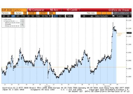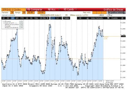 Por parte de la deuda española, hoy se han producido subidas relativamente notables. Pese al manto protector de Mario Draghi y sus compras mensuales de 60.000 millones de euros en deuda europea, la rentabilidad del bono español a 10 años ha subido del 1,55% al que cerró ayer al 1,64%. Mientras, el interés del venerado bund alemán también sube, pero menos, al situarse en el 0,308%. El resultado es que la prima de riesgo patria ha subido desde los 125 puntos básicos hasta los 134. El Tesoro Público ha colocado hoy 3.454,6 millones de euros en bonos a cinco años indexados a la inflación, en obligaciones a diez años, y a treinta años, a un menor interés.