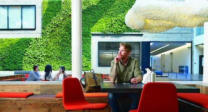 Integrar estos elementos en el espacio de trabajo es más complejo, pero ni mucho menos imposible. “Nosotros recurrimos a los jardines verticales, terrazas ajardinadas y fuentes, entre otros”, apunta Íñigo Ortiz, socio fundador del estudio Ortiz-León Arquitectos. Por sus manos han pasado los planos del nuevo edificio del BBVA, que tiene cubiertas ajardinadas, o la sede social de Sanitas de Madrid, edificio en el que el visitante en todo momento tiene contacto con elementos orgánicos. Incluso la calidad del aire que respiramos en el puesto de trabajo se puede tratar para que sea más refrescante.