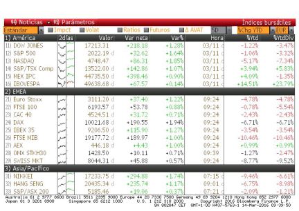 El pasado jueves, el presidente del Banco Central Europeo (BCE) anunció, entre otras medidas, que los bancos de la zona euro dispondrán desde el próximo mes de junio de financiación por un importe de hasta el 30% de su masa de préstamos a un tipo del 0%. Este tipo puede llegar a ser incluso del -0,4% si antes de que finalice 2017 las entidades financieras han aumentado su volumen de créditos. Esta medida, junto con una nueva rebaja de los tipos de interés hasta el 0% o la ampliación del volumen del programa de compra de activos (QE), sirvieron para catapultar a unos mercados que han perdido en apenas dos meses mucho más que lo que se habían dejado en el conjunto del ejercicio pasado. No obstante, las palabras de Draghi han logrado devolver la tranquilidad a las Bolsas, que, incluso, han acabado hoy desmarcándose de una nueva caída en el precio del crudo.
