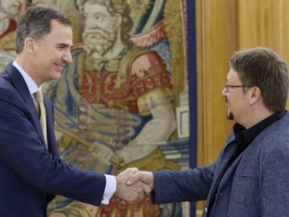 El portavoz de Compromís en el Congreso, Joan Baldoví, ha remitido a primera hora de este martes el citado documento, que ha llamado 'Acuerdo del Prado', a los partidos de izquierda y que ha entregado al Rey, con el que se ha reunido en Zarzuela dentro de la ronda de contactos que ha abierto con los partidos políticos antes de convocar elecciones.