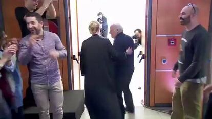 El empresario no pudo contener las lágrimas de principio al final. Desde que sale del ascensor hasta el final, Ortega es incapaz de contener la emoción. La empresa preparó un enlace multimedia online con varias de sus sedes, a través del cual los empleados del grupo se unieron a la felicitación.