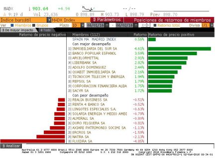 Renta 4 apuesta por BME. Pese a que el gestor de las Bolsas españolas presentó ayer una caída en los volumenes negociados de los cinco primeros meses del año, Renta4 reitera su consejo de sobreponderar para el valor al que le da un potencial del 20%. "Entendemos que los volúmenes se mantendrán flojos hasta que se aclare el escenario político a nivel nacional (elecciones 26-junio) y haya mayor claridad sobre el ciclo económico global. De cara al medio plazo, seguimos confiando en una recuperación de volúmenes de negociación una vez se reanuden las salidas a bolsa previstas y se confirme la recuperación económica y de beneficios empresariales", explica la casa de análisis. Mientras tanto, "la elevada y sostenible rentabilidad por dividendo ordinaria en efectivo (7% con cargo a 2016 estimada), los movimientos corporativos en el sector y la menor probabilidad de una tasa Tobin deberían servir de soporte a la cotización", concluye. (Foto: EFE, Sergio Barrenechea)