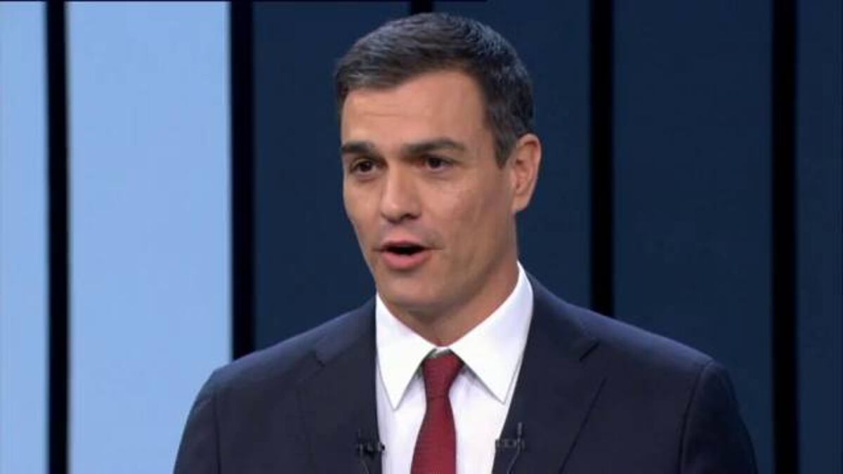 Pedro Sánchez mantuvo un tono austero, muy duro con Rajoy, pero sin entrar en los exabruptos y la descalificación de su último cara a cara. Acusó al presidente en funciones de haber gobernado para las clases más acaudaladas y ante la duda, haber tomado las decisiones que perjudicaban siempre a la mayoría. Fue el único que trató de sacar al debate ya desde el principio el asunto de la corrupción, aunque en este tema no tuvo ningún respaldo de los dirigentes de C’s y Unidos Podemos hasta mediado el debate minutos más tarde.
