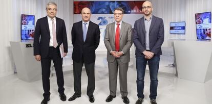 Quienes han diseñado la parte económica de los programas electorales de los cuatro grandes partidos como opciones de gobernar volvieron a tener hoy la oportunidad de debatir sobre sus propuestas para arañar votos en el caladero de los indecisos. Al encuentro organizado por El País que fue retransmitido en su página web acudieron el ministro de Economía en funciones y representante del PP, Luis de Guindos, el exministro y responsable del programa económico del PSOE, Jordi Sevilla, el coordinador del programa económico de Unidos Podemos, Nacho Álvarez y el máximo responsable de Economía de Ciudadanos, Luis Garicano.
