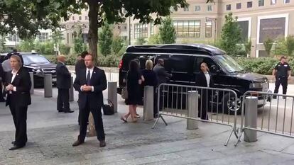 Clinton estaba asistiendo de pie en los jardines del World Trade Center (WTC) a la ceremonia en la que se leen los nombres de las casi 3.000 víctimas que perecieron el 11 de septiembre de 2001, en la que también estaban presentes su rival republicano, Donald Trump, y autoridades locales.