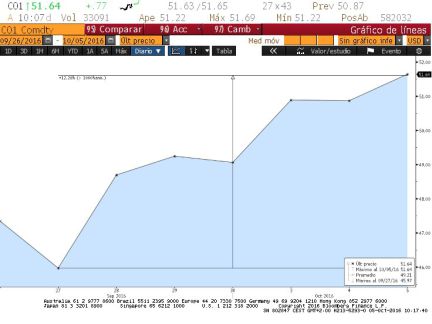 Petróleo. El precio del crudo se ha recuperado más de un 12% desde que se supo que la OPEP puede cerrar un acuerdo para reducir su producción en la reunión que mantendrá en noviembre.