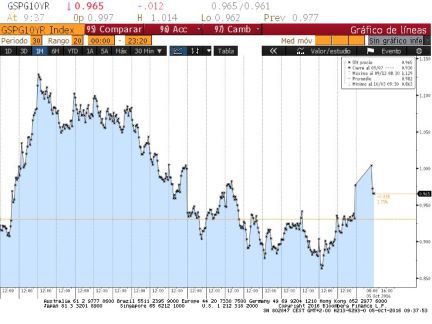 El rendimiento del bono español arranca el día sobre el 1% y el bund alemán también eleva su rendimiento. Prolongan los avances de ayer, después de que Bloomberg señalara que el BCE estudia una reducción gradual del programa de compras.
