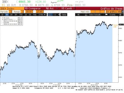 El Ibex 35 mira ya a cotas altas tras romper resistencias en la sesión de ayer. El sector bancario y los buenos datos del PIB de China han servido para apuntalar los ascensos.