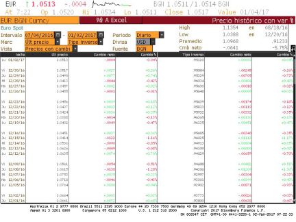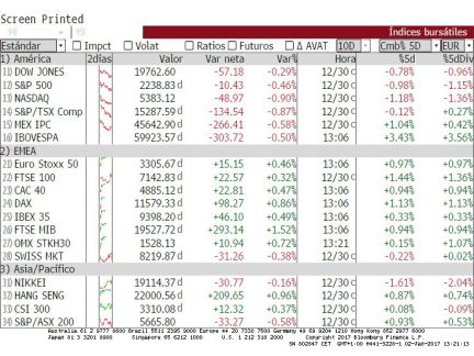 En el mercado de divisas, el euro recibe 2017 con una caída cercana al 0,5%, hasta los 1,047 dólares.