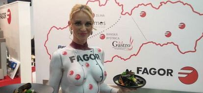La nota llega después de que en las redes sociales se haya difundido una fotografía de una feria en Bratislava, capital de Eslovaquia, en la que una azafata ofrece platos con comida con el torso desnudo y sobre el cual se han pintado el nombre y el logotipo de la marca.