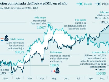 La rentabilidad del bonos español a diez años mantuvo un comportamiento estable a lo largo del mes y cerró por debajo del 1,5% (1,449%), que llegó a superar en plena oleada de la crisis catalana. La prima de riesgo, por su parte, concluye el mes por debajo de los 110 puntos básicos.