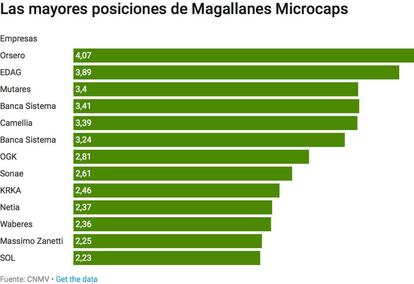 La mayor posición de su cartera está en la distribuidora italiana de frutas Orsera, donde tiene un 4%, según informó a la CNMV a finales del año pasado. Después, tiene un 3,98% invertido en la ingeniería alemana Edag y un 3,71% en la financiera del mismo país Mutares. En cuanto a la Bolsa española, cuenta tan solo con un 1,57% en Reno de Medici.