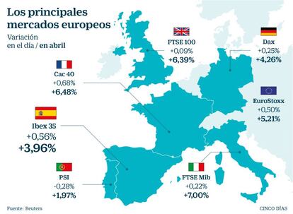 Calma chicha. El Ibex ha tenido que pelear cada punto para anotarse un 3,96% en el mes de abril. El selectivo español ha logrado recuperar parte del terreno perdido durante febrero y marzo a base de paciencia y persistencia y suavizar así las pérdidas desde el arranque del año, que se sitúan en el 0,5%.