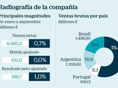 Durante la primera mitad del ejercicio, sus ventas netas cayeron un 10%, hasta los 3.800 millones de euros, y un 4,5% en España, mientras que las ventas brutas bajo enseña alcanzaron los 4.600 millones de euros, lo que supone un descenso del 9,2% respecto al mismo periodo de 2017 por el efecto divisa. En moneda local, las ventas brutas crecieron un 1,4% en el semestre. Las ventas brutas bajo enseña en Iberia retrocedieron un 3%, hasta los 3.084,8 millones de euros. De esta cantidad, 2.689,6 millones correspondieron a España, donde las ventas retrocedieron un 2,9%, mientras que en Portugal facturó 395,2 millones, un 3,3% menos.