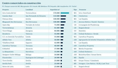 Ya hay 30 complejos avanzados por los que las inmobiliarias añadirán un 8% más a la superficie actual Cuatro de los proyectados son de muy gran tamaño