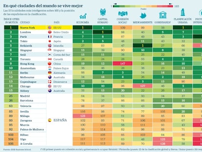 Más allá del panorama nacional, por primera vez este año, el ranking muestra un descenso generalizado en la reputación de las urbes de 1,1 puntos, algo que el responsable del Reputation Institute achaca a una tendencia de “falta de confianza hacia las instituciones en general”. Otro “cambio fundamental”, es que, también por primera vez en los siete años en los que se viene elaborando el listado, la seguridad ha tenido más peso que la belleza a la hora de calificar la reputación de las urbes.
