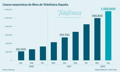 Telefónica eleva un 114% sus accesos mayoristas de fibra y llega a 1,15 millones
