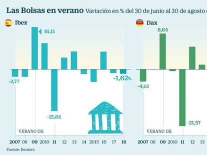 Con esta situación complicada en los emergentes, las Bolsas dan carpetazo a agosto con números rojos. El Ibex cae más del 4% en el mes, la peor caída desde mayo y eleva a más del 6% los recortes en lo que va de año. Gran parte de la culpa de esta bajada se debe al mal comportamiento de los grandes del selectivo, concretamente a cuatro. En la lista de los diez valores más bajistas del Ibex en el año, destacan BBVA, Santander, Telefónica e Inditex.