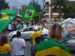 Seguidores de Bolsonaro fuera de su casa en Río de Janeiro han ondeado la bandera verde amarilla nacional y han coreado "¡Nuestro presidente!" cuando el candidato se disponía a regresar a su vivienda después de votar.