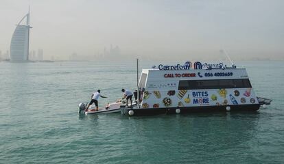 Carrefour ha presentado en Dubai su primer supermercado flotante de la mano de su socio local, Majid Al Futtaim. La tienda, bautizada como Carrefour bocados y más en la orilla, abrirá seis días a la semana de 10:00 a 18:00 horas. El Aqua Pod, el barco construido a medida en el que se ha instalado el supermercado, dará servicio a los yates de los ultrarricos, las motos acuáticas y también a los clientes de tres playas de Dubai: Kite Beach, Jumeirah Public Beach y Al Sufouh Beach.