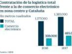 Superficie. El área de influencia de Madrid ha llegado al récord de tamaño con 9,5 millones de metros cuadrados en naves logísticas (con solo un 6,5% disponible), según Deloitte, y en Cataluña alcanza los 5,3 millones (3,5% de disponibilidad). Respecto a la superficie contratada, se alcanzó en 2018 el máximo, con 950.000 m2 y en Cataluña fue el segundo mejor año después de 2016, con 710.000 m2.