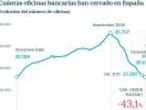 Actualmente, en el conjunto del país existen 25.755 oficinas, un 1% menos que a finales del 2018. El punto álgido se alcanzó también en 2008 con 45.707 sucursales en funcionamiento. En total, un recorte del 44%.
