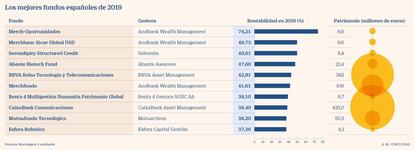 Las grandes gestoras también se han colado en esta clasificación de los fondos españoles más rentables en 2019. Lo han hecho con productos temáticos.
