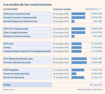 En el caso de Sacyr, el pasado diciembre comunicó su intención de reclamar judicialmente la devolución de los avales, junto con el coste del mantenimiento bancario. En ningún caso, según información de Enresa, las empresas “habían expresado su voluntad de retirar las ofertas presentadas”.