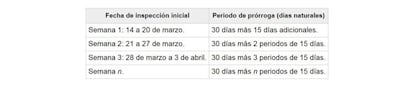 Los plazos quedan, por tanto, como se muestra en el siguiente cuadro: