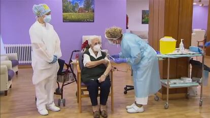 Una residente y una enfermera de la residencia Los Olmos de Guadalajara han sido las primeras en recibir la vacuna de Pfizer