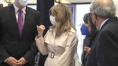 La vicepresidenta tercera del Gobierno y ministra de Trabajo y Economía Social, Yolanda Díaz, ha advertido a la banca, justo mientras se está celebrando la junta de CaixaBank, de que "no son tiempos de despidos", al ser preguntada por el requerimiento hecho desde el Ministerio a BBVA y Caixabank para que sean "estrictamente rigurosos" con las formalidades del periodo de consultas de sus expedientes de regulación de empleo (ERE).